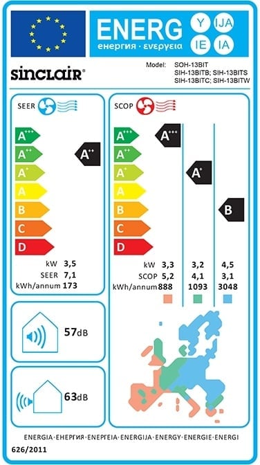 De Sinclair Terrel maakt gebruik van R32 koudemiddel, wat zorgt voor een lagere milieubelasting en betere energieprestaties .
